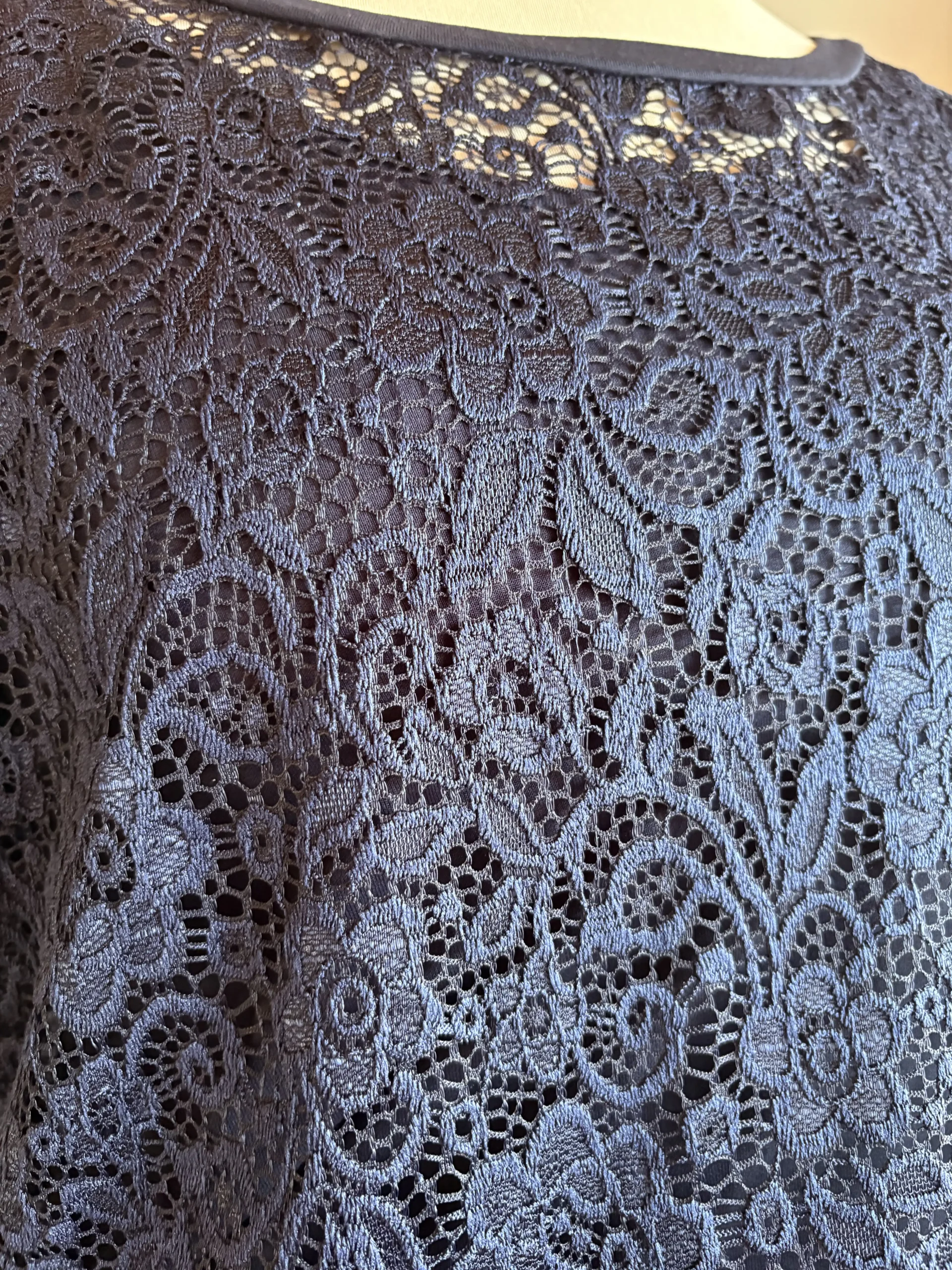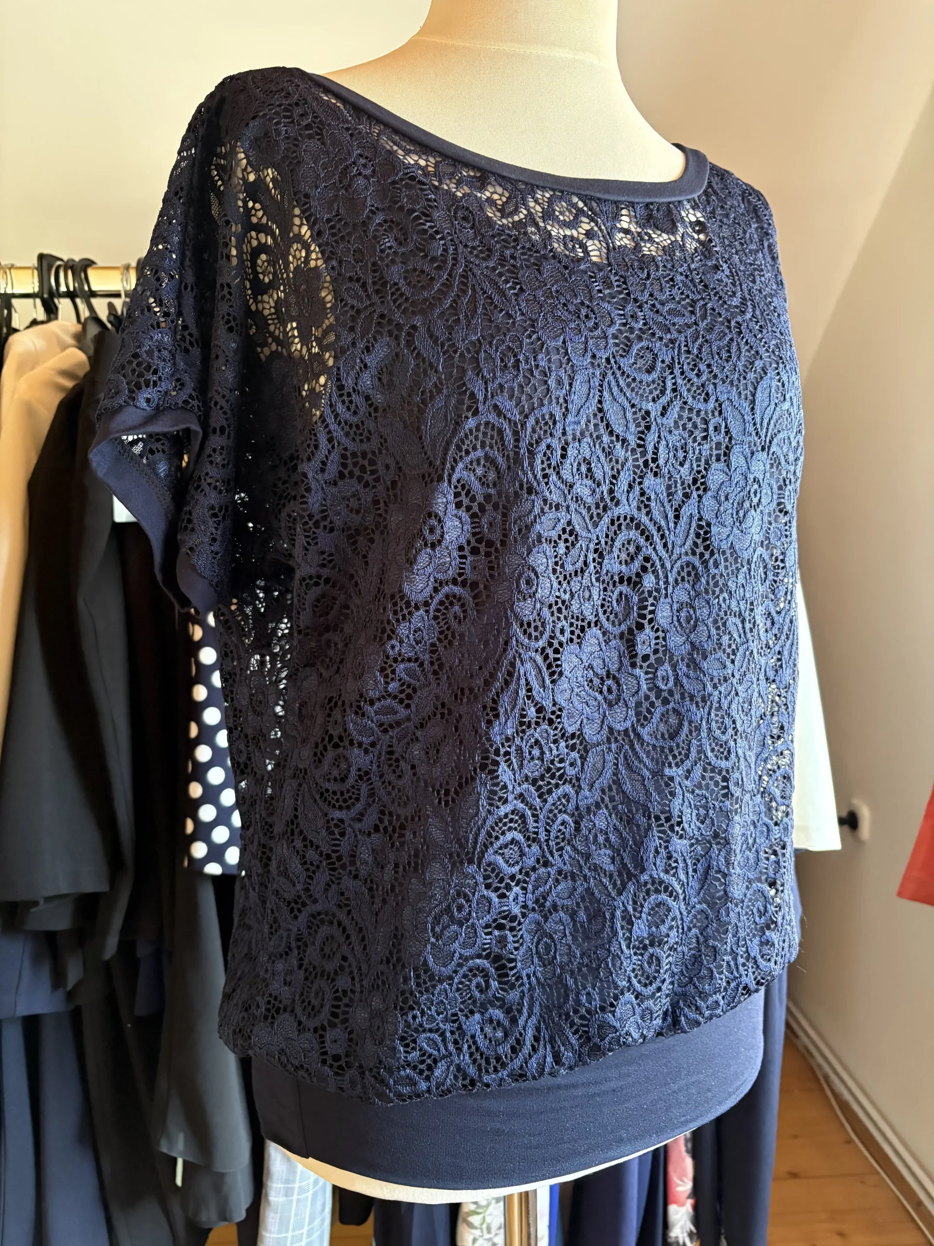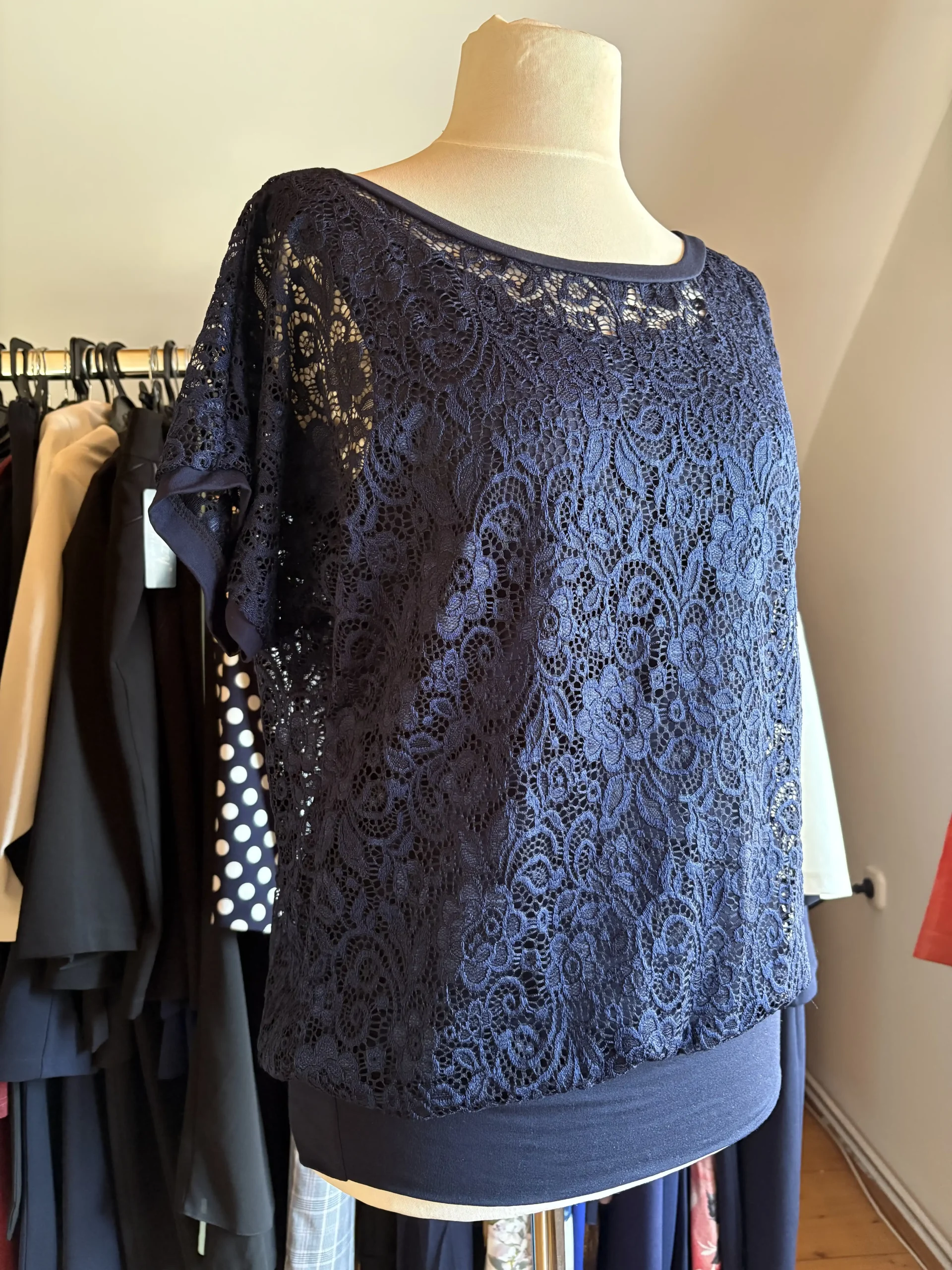 Sötétkék, divatos lezser csipkés felső, alsó toppal.